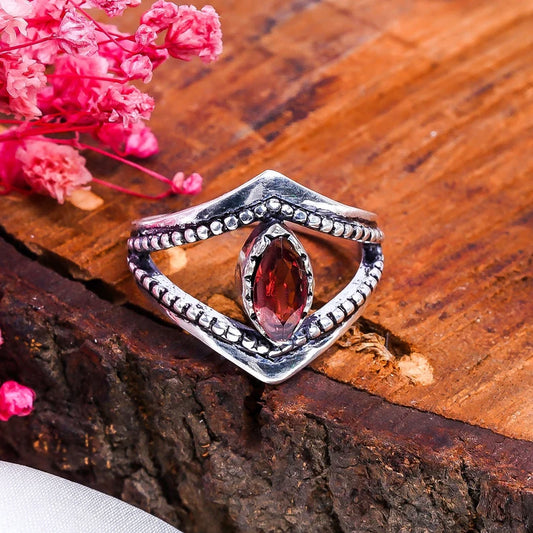 Garnet Gemstone Handcrafted Statement Minimalist Ring