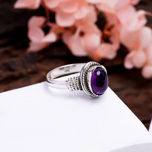 Genuine Amethyst Handmade Promise February Birthstone Ring