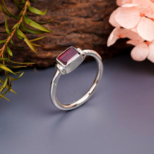 Garnet Minimalist Birthstone Handcrafted Natural Gemstone Ring