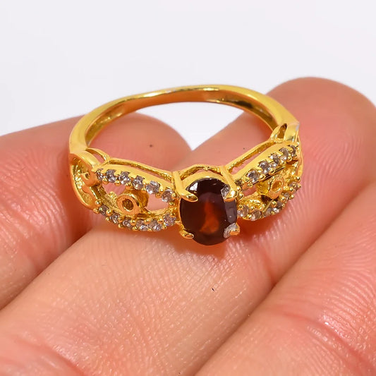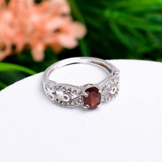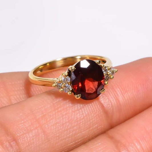 Garnet Natural Gemstone Women's Minimalist Cubic Zirconia Ring