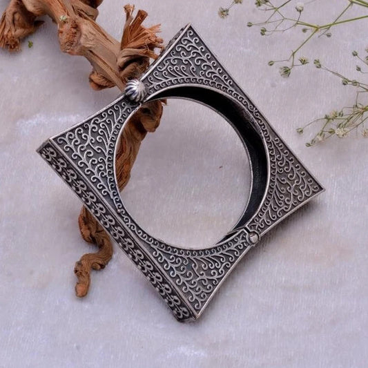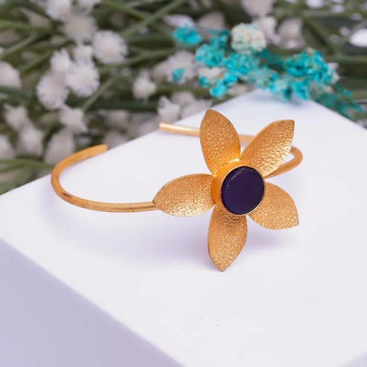 Black Druzy Flower Design 925 Sterling Silver Bangle
