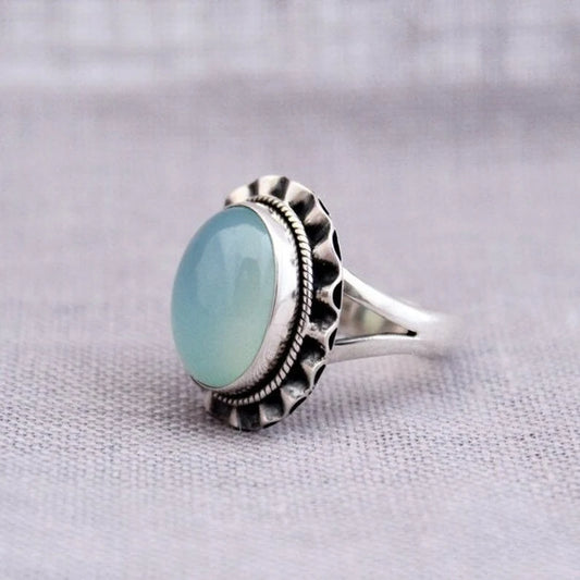 Aqua Chalcedony Gemstone Birthstone Statement Boho Ring