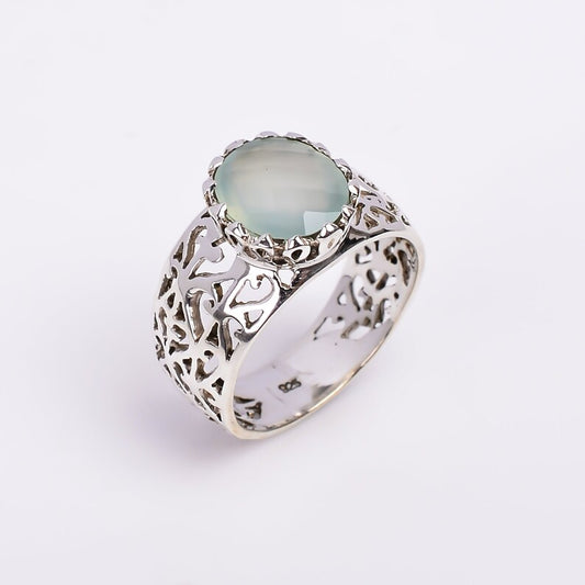 Aqua Chalcedony Handcrafted Bohemian Ring