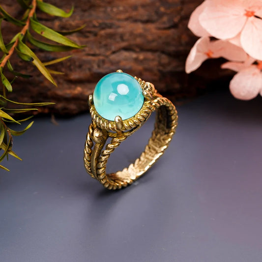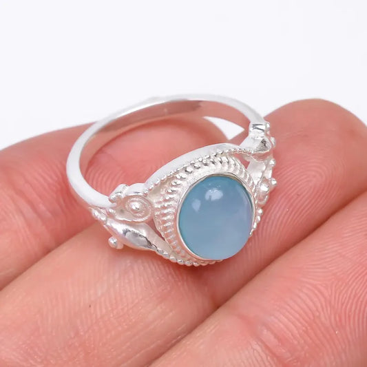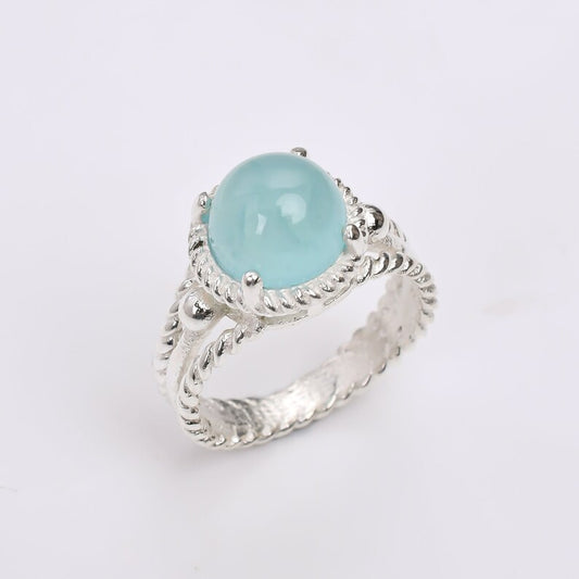 Aqua Chalcedony Natural Gemstone Handcrafted Statement Ring
