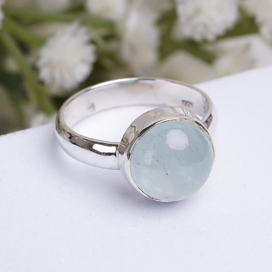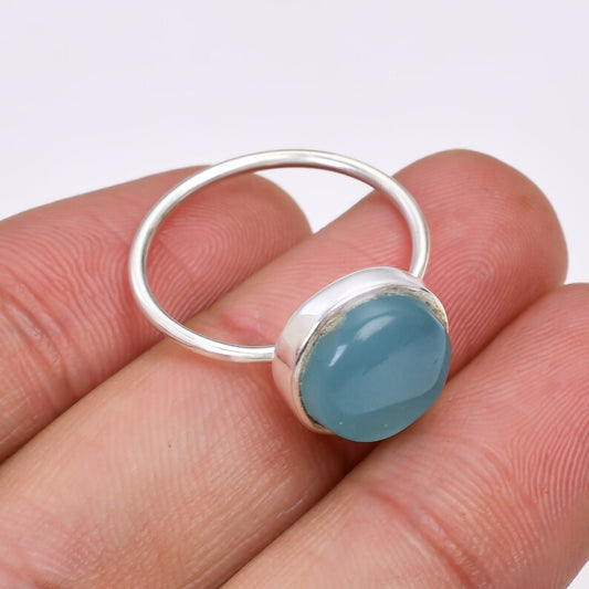 Aqua Chalcedony Gemstone Handmade Minimalist Statement Ring
