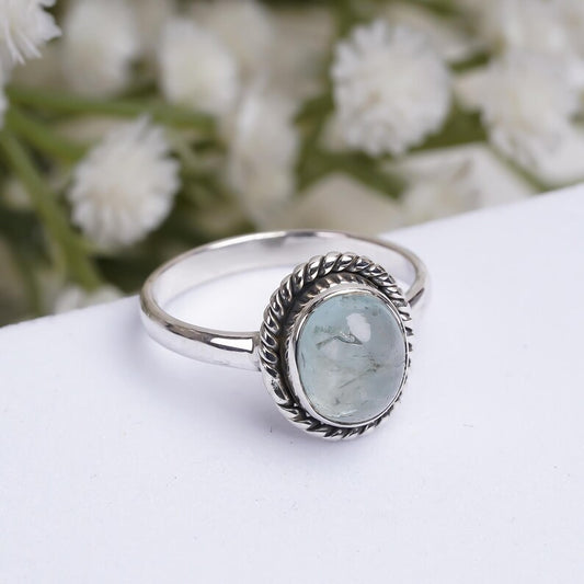 Aquamarine Natural Gemstone Handcrafted Statement Ring