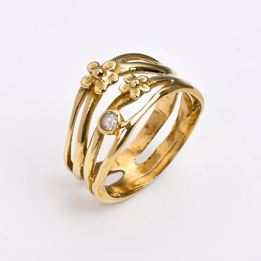 Cubic Zirconia Handcrafted Natural Gemstone Birthstone Flower Ring