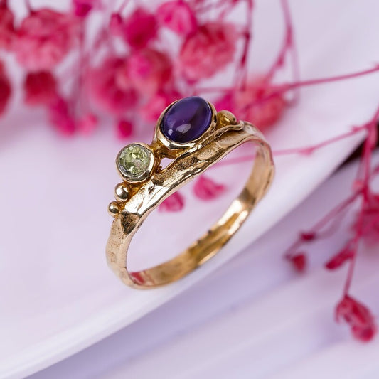 Cubic Zirconia And Amethyst Handcrafted Statement Gemstone Ring