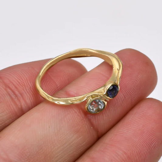 Cubic Zirconia And Lolite Gemstone Statement Handcrafted Ring
