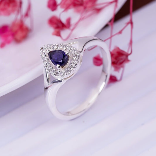 Cubic Zirconia And Iolite Handcrafted Engagement Ring