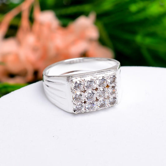 Cubic Zirconia Natural Gemstone Handcrafted Signet Ring