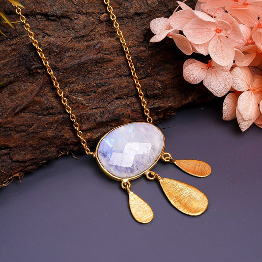 Rainbow Moonstone 925 Sterling Silver Necklace
