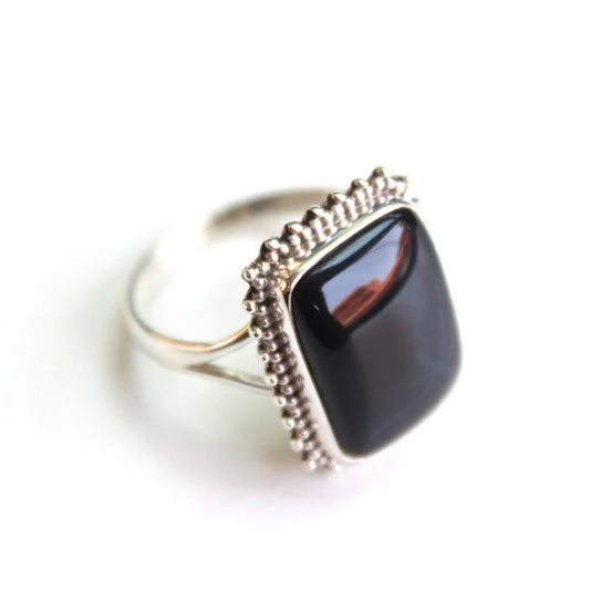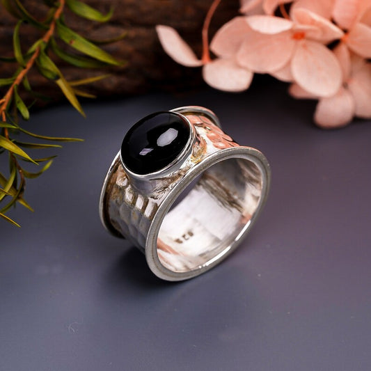 Black Onyx Handcrafted Gemstone Birthstone Ring