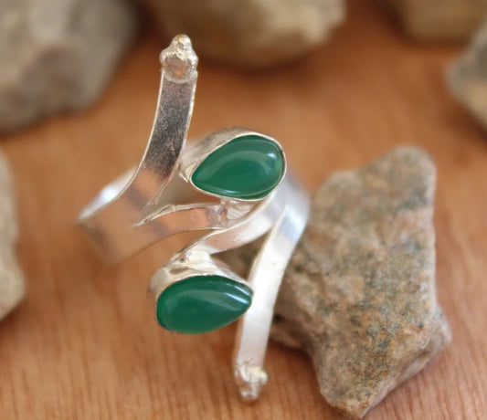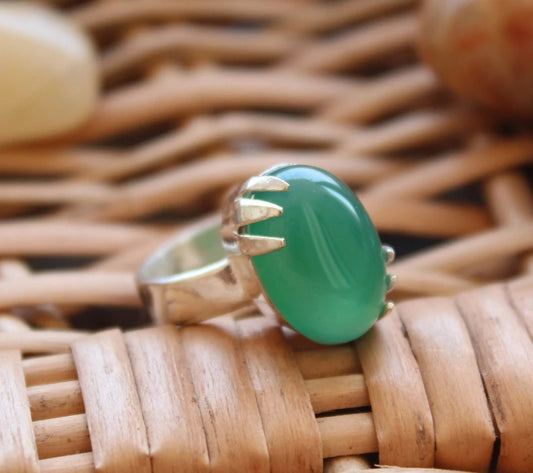 Antique Looking Green Onyx Adjustable Birthstone Ring