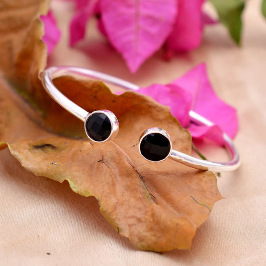 Black Onyx 925 Sterling Silver Adjustable Bangle