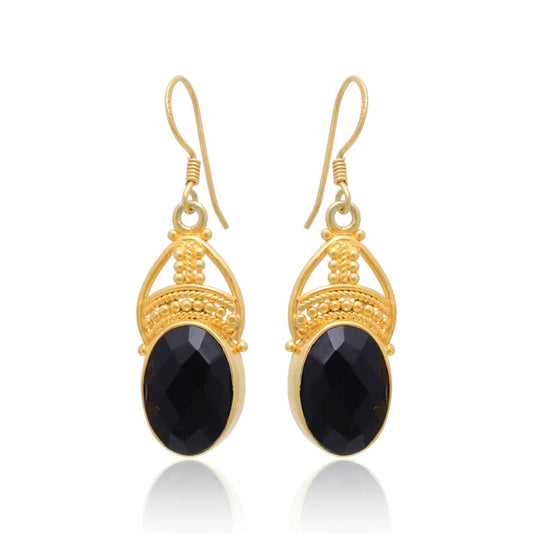 Black Onyx Gemstone Handcrafted Drop Earrings