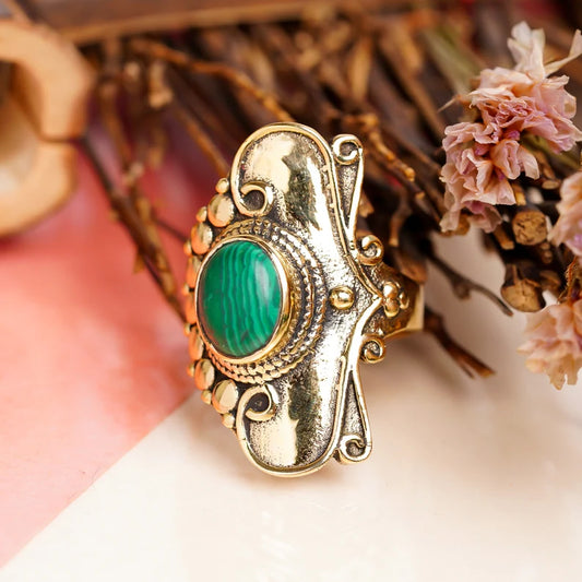 Black Onyx & Malachite Gemstone Handcrafted Statement Ring