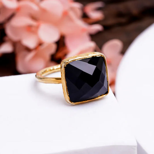 Black Onyx Birthstone Handcrafted Gemstone Ring