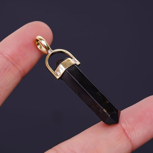 925 Sterling Silver Black Onyx Gemstone Pencil Point Pendant