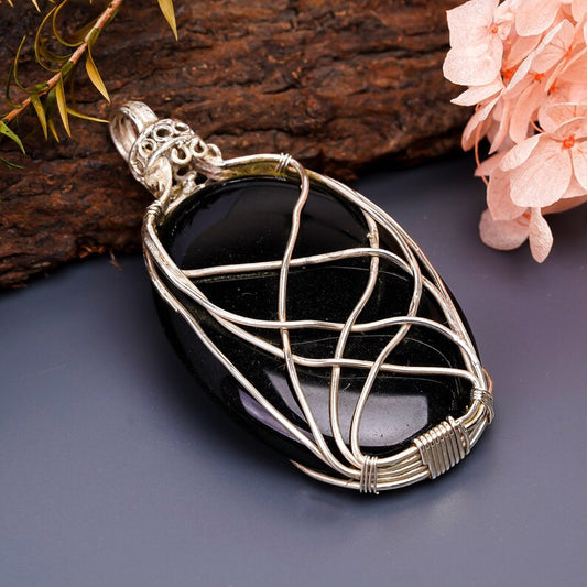 Black Onyx 925 Sterling Silver Wire Wrapped Pendant