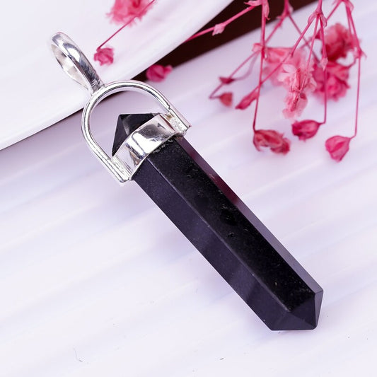 925 Sterling Silver Pencil Black Onyx Gemstone Pendant