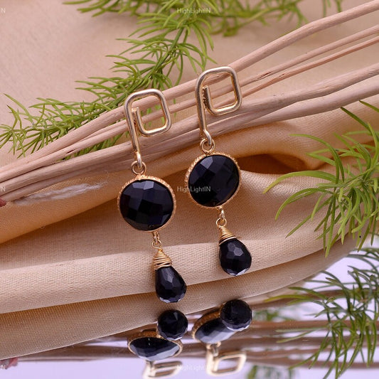 Black Onyx Gemstone Dangle and Drop Handmade Earrings