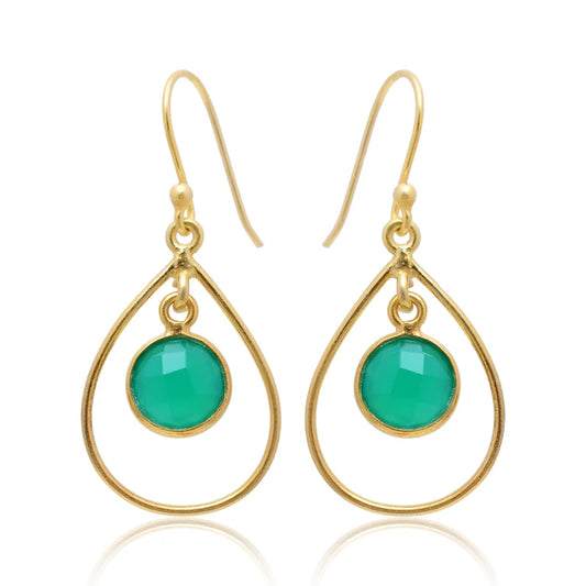 Green Onyx Gemstone Drop Minimalist Handcrafted Earrings