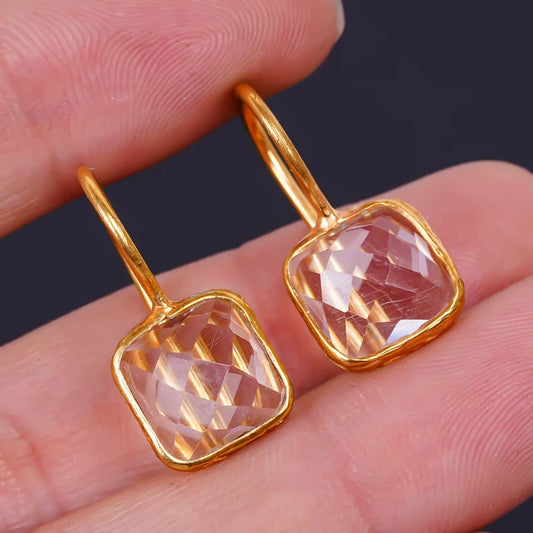 Crystal Quartz Gemstone Handcrafted Drop Earrings