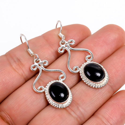 Drop Black Onyx Gemstone Dangle Handmade Earrings