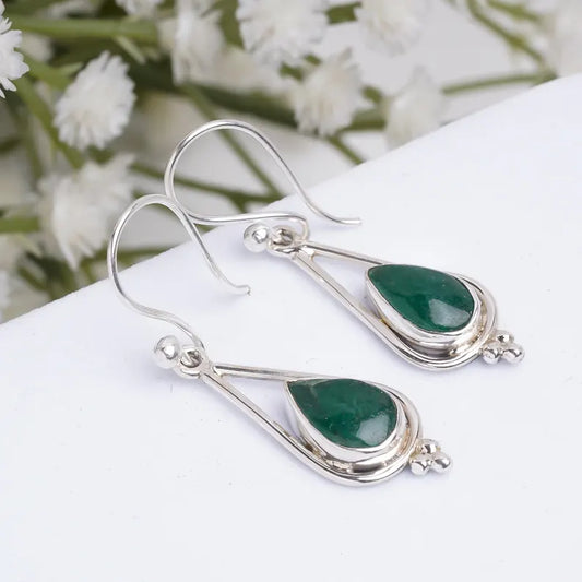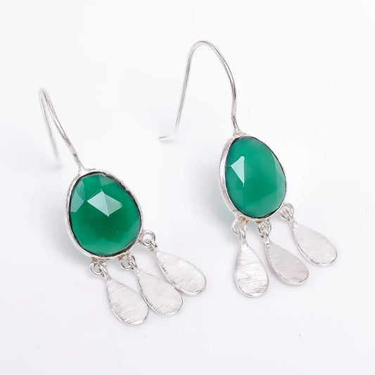 Green Onyx Dangle Gemstone Handcrafted Drop Earrings