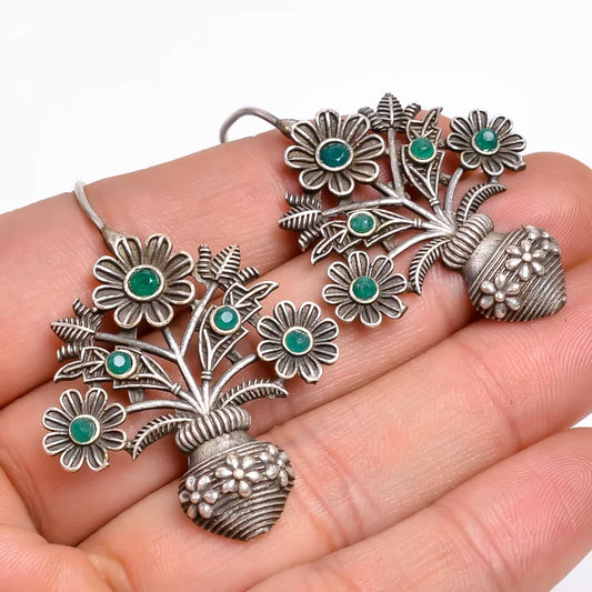 Green Onyx Flower Handcrafted Natural Gemstone Drop Earrings
