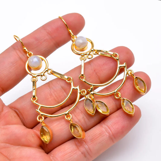 Citrine And Rainbow Dangling Gemstone Handcrafted Drop Earrings
