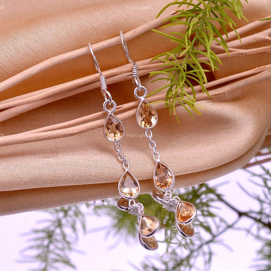 Citrine Handcrafted Dangling Gemstone Drop Earrings