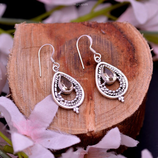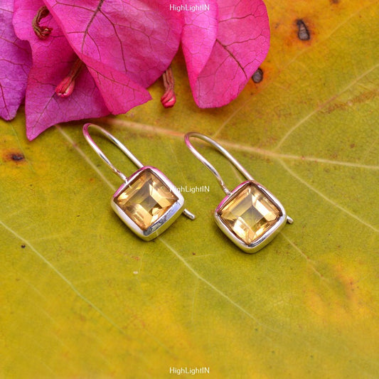 Citrine Dangling Gemstone Handcrafted Drop Earrings