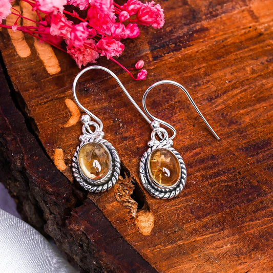 Malachite And Citrine Handcrafted Gemstone Drop Earrings