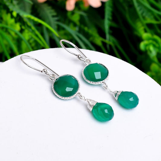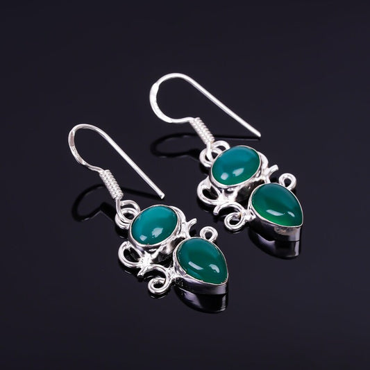 Green Onyx Gemstone Handcrafted Drop Earrings