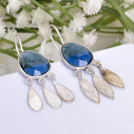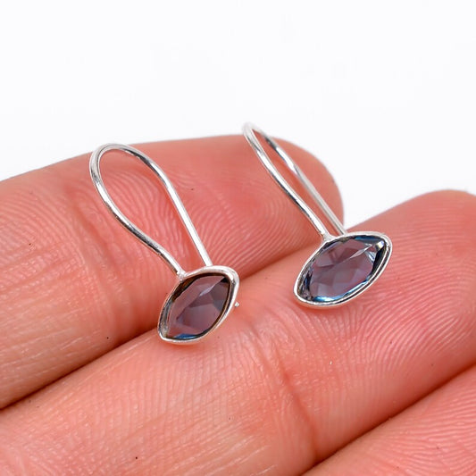 Iolite Gemstone Handcrafted Drop Minimalist Earrings
