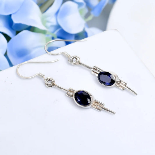 Iolite Gemstone Handcrafted Drop and Dangle Earrings