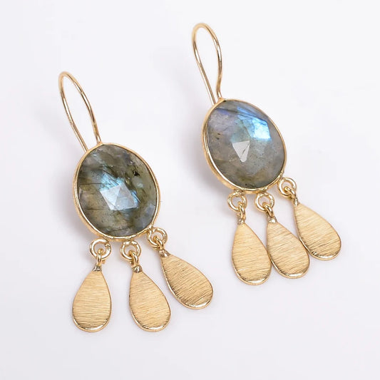 Labradorite Handcrafted Natural Gemstone Drop Earrings