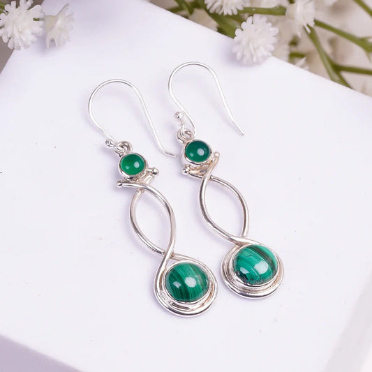 Malachite & Green Onyx Natural Gemstone Drop Earrings