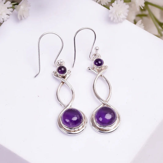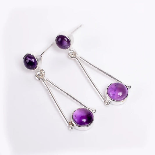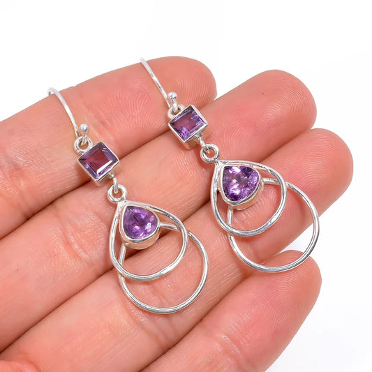 Natural Amethyst Gemstone Handcrafted Drop Earrings