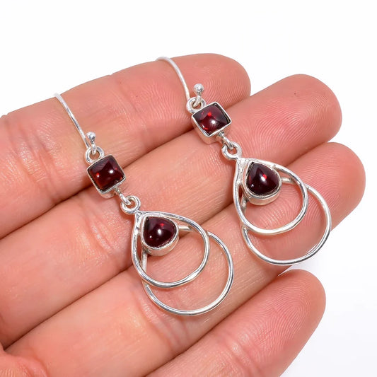 Natural Gemstone Garnet Handcrafted Drop Earrings