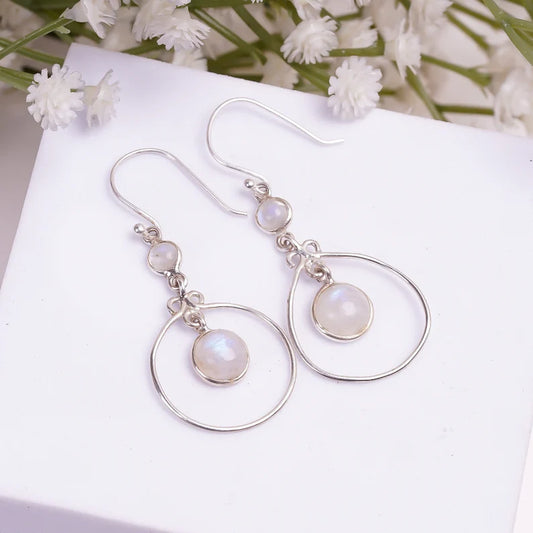 Natural Moonstone Gemstone Handcrafted Drop Earrings