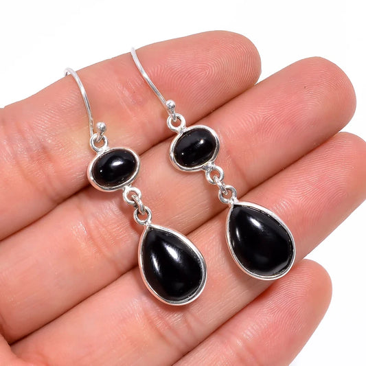 Natural Black Onyx Gemstone Handcrafted Drop Earrings