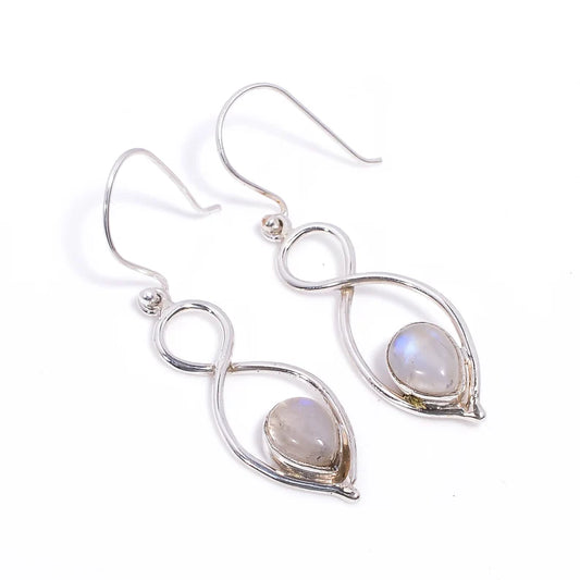 Natural Rainbow Moonstone Handcrafted Drop Earrings