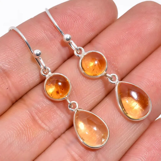 Natural Citrine Gemstone Handcrafted Drop Earrings