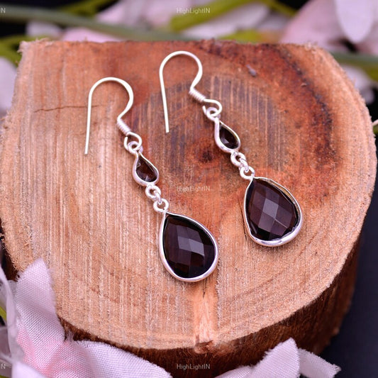 Natural Smoky Topaz Gemstone Handcrafted Dangle Earrings