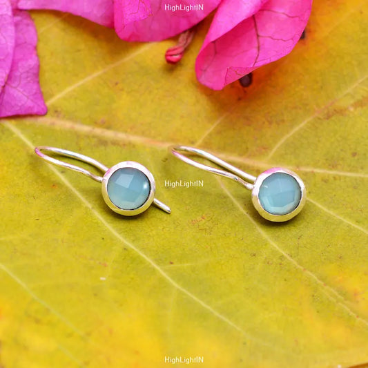 Natural Aqua Chalcedony Gemstone Handcrafted Drop Earrings