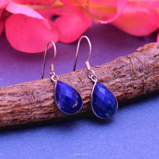 Natural Lapis Lazuli Gemstone Handcrafted Drop Earrings