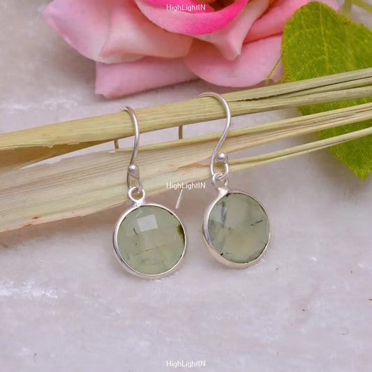 Natural Prehnite Gemstone Handcrafted Drop Earrings